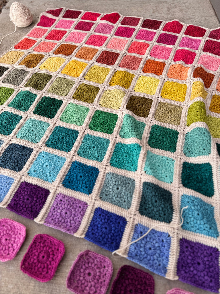 Marshmallow skeins will also be available (sold separately) if you need a perfectly coordinating neutral for your project 🤍 You will need 5 skeins of Marshmallow on Merino Nylon DK to complete the pictured blanket.