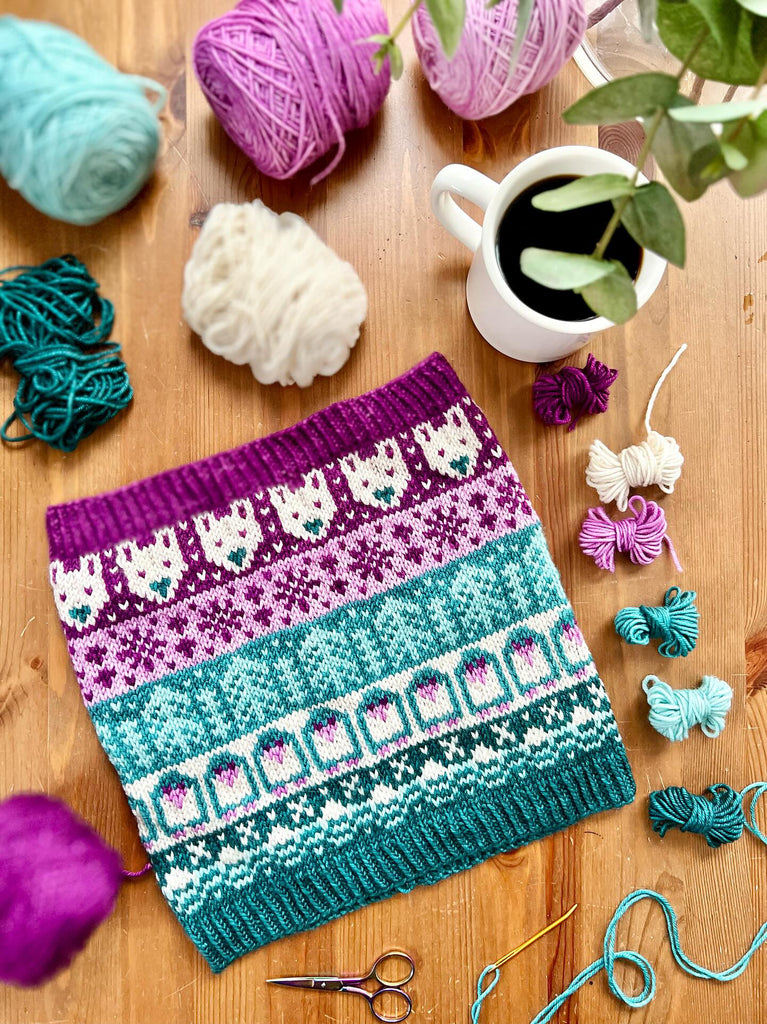 This listing is for one "Arctic Doodle Cowl Kit". This kit can be used to make Knitwinter Nights Cowl by Ellydria Knits or the Arctic Doodle Cowl by Jamie Lomax of Pacific Knit Co.